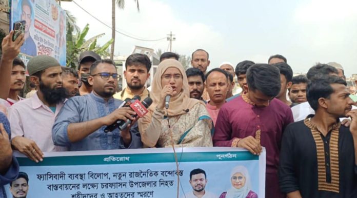 জাতীয় নাগরিক পার্টির জ্যেষ্ঠ যুগ্ম আহবায়ক সামান্তা শারমিন বলেছেন, ফ্যাসিস্ট আওয়ামী লীগ দক্ষিণ এশিয়ার সবচেয়ে বড় সন্ত্রাসী সংগঠন। গত ১৫ বছর সন্ত্রাসী সংগঠন আওয়ামী লীগ দেশে যে হত্যাকান্ড চালিয়েছে তার বিচার হওয়ার আগ পর্যন্ত দেশে কোন নির্বাচনের বন্দোবস্ত মেনে নেবে না গণঅভ্যুত্থানে অংশ নেওয়া বিপ্লবী ছাত্র জনতা। তিনি আজ ফ্যাসিবাদী ব্যবস্থা বিলোপ, নতুন রাজনৈতিক বন্দোবস্ত বাস্তবায়নের লক্ষে চরফ্যাশন উপজেলার নিহত শহীদদের ও আহতদের স্মরণে উপজেলা জাতীয় নাগরিক পার্টি (এনসিপি) আয়োজিত চরফ্যাশন কেন্দ্রীয় শহীদ মিনারে এক পথ সভায় প্রধান অতিথি’র বক্তব্যে এ কথা বলেন।