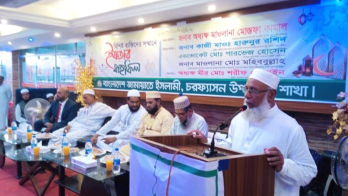 বাংলাদেশ জামায়াতে ইসলামী চরফ্যাসন উপজেলা শাখার ইফতার মাহফিল অনুষ্ঠিত হয়েছে। আল্লাহর জমিনে কোরআনের আইন প্রতিষ্ঠা করতে হবে বলছেন ভোলা-৪ আসনে জামায়াতে ইসলামীর প্রার্থী মোস্তফা কামাল।