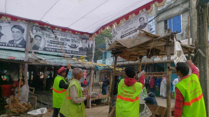 দ্বাদশ জাতীয় সংসদ নির্বাচন ২০২৪ শেষ হওয়ায় নির্বাচনে আংশগ্রহনকারী প্রার্থীদের প্রচারণায় ব্যবহৃত পোস্টার ব্যানার ও অন্যান্য প্রচারণা সামগ্রী অপসারণ শুরু করেছে ঢাকা উত্তর সিটি কর্পোরেশন (ডিএনসিসি)। রোববার রাত থেকেই ডিএনসিসির আওতাধীন প্রতিটি অঞ্চলে পোস্টার ব্যানার অপসারণ শুরু করেছে পরিচ্ছন্ন কর্মীরা। দ্রুত সময়ের মধ্যে ডিএনসিসির আওতাধীন এলাকার সকল পোস্টার ব্যানার ফেস্টুন অপসারণ করে শহরের পরিবেশ রক্ষা করা জন্য ডিএনসিসির বর্জ্য বিভাগকে নির্দেশ দেন আতিকুল ইসলাম।