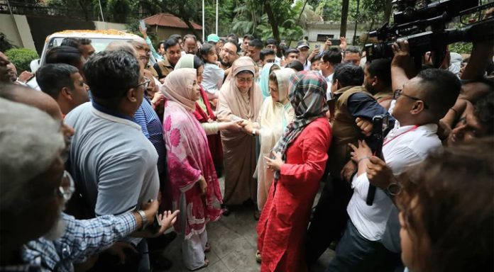 পুত্রবধূদের নিয়ে পায়ে হেঁটে বাসায় ঢুকলেন খালেদা জিয়া