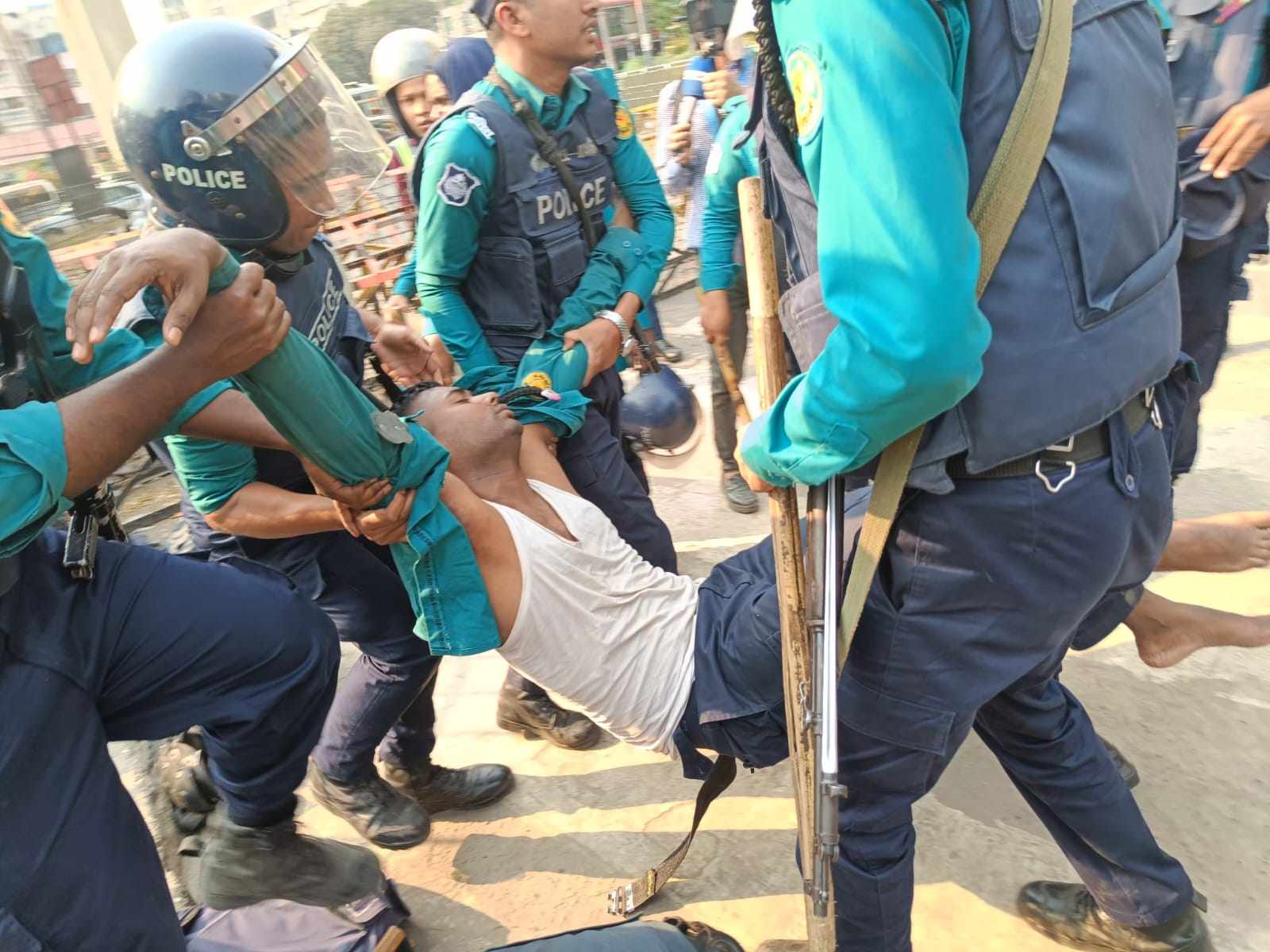 মঙ্গলবার বিকেল পৌনে চারটার দিকে পদযাত্রাটি শাহবাগ পার হয়ে বাংলামোটরের দিকে যাওয়ার সময় ব্যারিকেড দিয়ে আটকে দেওয়া হয়। এ সময় পুলিশের সঙ্গে হাতাহাতি ও ধস্তাধস্তির ঘটনা ঘটে। এতে বেশ কয়েকজন পুলিশ সদস্য আহত হন।