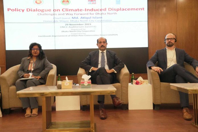 বুধবার রাজধানীর গুলশানে ডিএনসিসির প্রধান কার্যালয় নগর ভবনের ৬ষ্ঠ তলায় সম্মেলন কক্ষে ইউএনডিপির সহযোগিতায় ডিএনসিসি ‘জলবায়ু উদ্বাস্তু নিয়ে ঢাকা উত্তরের চ্যালেঞ্জ ও সমাধান’ বিষয়ক পলিসি ডায়ালগ আয়োজন করে। দিনব্যাপী চলমান এই পলিসি ডায়ালগ অনুষ্ঠানে প্রধান অতিথির বক্তব্য মেয়র এসব কথা বলেন। মেয়র বলেন, আজকের এই অনুষ্ঠানে জলবায়ু উদ্বাস্তু অনেকে যে যে বিষয়গুলো তুলে ধরেছেন সেগুলোকে আন্তর্জাতিক পর্যায় তুলে ধরার জন্যই এই পলিসি ডায়ালগের উদ্যোগ নেয়া হয়েছে। বিভিন্ন জেলা থেকে ঢাকায় আগত জলবায়ু উদ্বাস্তুদের সমস্যার কথা জলবায়ু সম্মেলনে তুলে ধরবো। আপনাদের বক্তব্য জলবায়ু সম্মেলনে বিশ্ব নেতা ও বিশ্বের মেয়রদের কাছে তুলে ধরবো। বিশ্বনেতাদের কাছে যে বার্তা দিতে চাই, তা হলো আমাদের থাকার ব্যবস্থা, আমাদের শিক্ষার ব্যবস্থা, সুস্থ বায়ুর ব্যবস্থা, সামাজিক নিরাপত্তা নিয়ে স্বাস্থ্যকর পরিবেশের ব্যবস্থা করা। জলবায়ু পরিবর্তনের ফলে ক্ষতিগ্রস্ত মানুষের জীবন মান নিশ্চিত করতে সরকার চেষ্টা করছে উল্লেখ করে মেয়র আরও বলেন, কিন্তু আমাদেরও সীমাবদ্ধতা আছে। আন্তর্জাতিক স¤প্রদায়েকে আহবান করবো তারা যেন এগিয়ে আসে। যাদের জন্য আজকের লবনাক্ত পানির উচ্চতা বেড়ে গিয়ে উপক‚লীয় এলাকার মানুষের জনজীবন বিপন্ন, যাদের জন্য উত্তরবঙ্গে পানি লেয়ার নিচে নেমে গিয়েছে সেখানে জনজীবন বিপন্ন তাদেরকে দ্বায়িত্ব নিতে হবে। ডিএনসিসির সহকারী নগর পরিকল্পনাবিদ ফারজানা ববির সঞ্চালনায় অনুষ্ঠানে অন্যান্যের সঙ্গে আরও উপস্থিত ছিলেন ইউএনডিপি বাংলাদেশের ডেপুটি আবাসিক প্রতিনিধি সোনালী দয়ারত্ম, ব্রিটিশ হাইকমিশনের জলবায়ু ও পরিবেশ বিষয়ক টিম লিডার এলেক্স হার্ভে, ডিএনসিসির প্রধান নির্বাহী কর্মকর্তা মোঃ সেলিম রেজা, ইমেরিটাস অধ্যাপক নজরুল ইসলাম, কীটতত্ত¡বিদ অধ্যাপক ড. কবিরুল বাশার, স্থপতি সালমা এ. শফি, ডিএনসিসির কাউন্সিলরবৃন্দ ও ঊর্ধ্বতন কর্মকর্তাবৃন্দ।