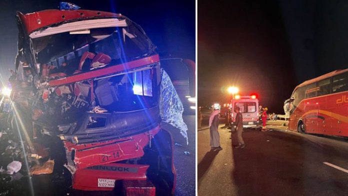 খবরে বলা হয়েছে, বাসটিতে অন্তত ৪৫ যাত্রী ছিল। মদিনার আল-উতামাহ নগরীর অদূরে আল হিজরাহ মহাসড়কে এ দুর্ঘটনা ঘটে।