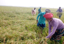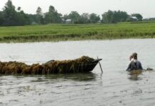 বাড়ছে নদীর পানি, কাঁচা ধান কাটায় ব্যস্ত কৃষকরা